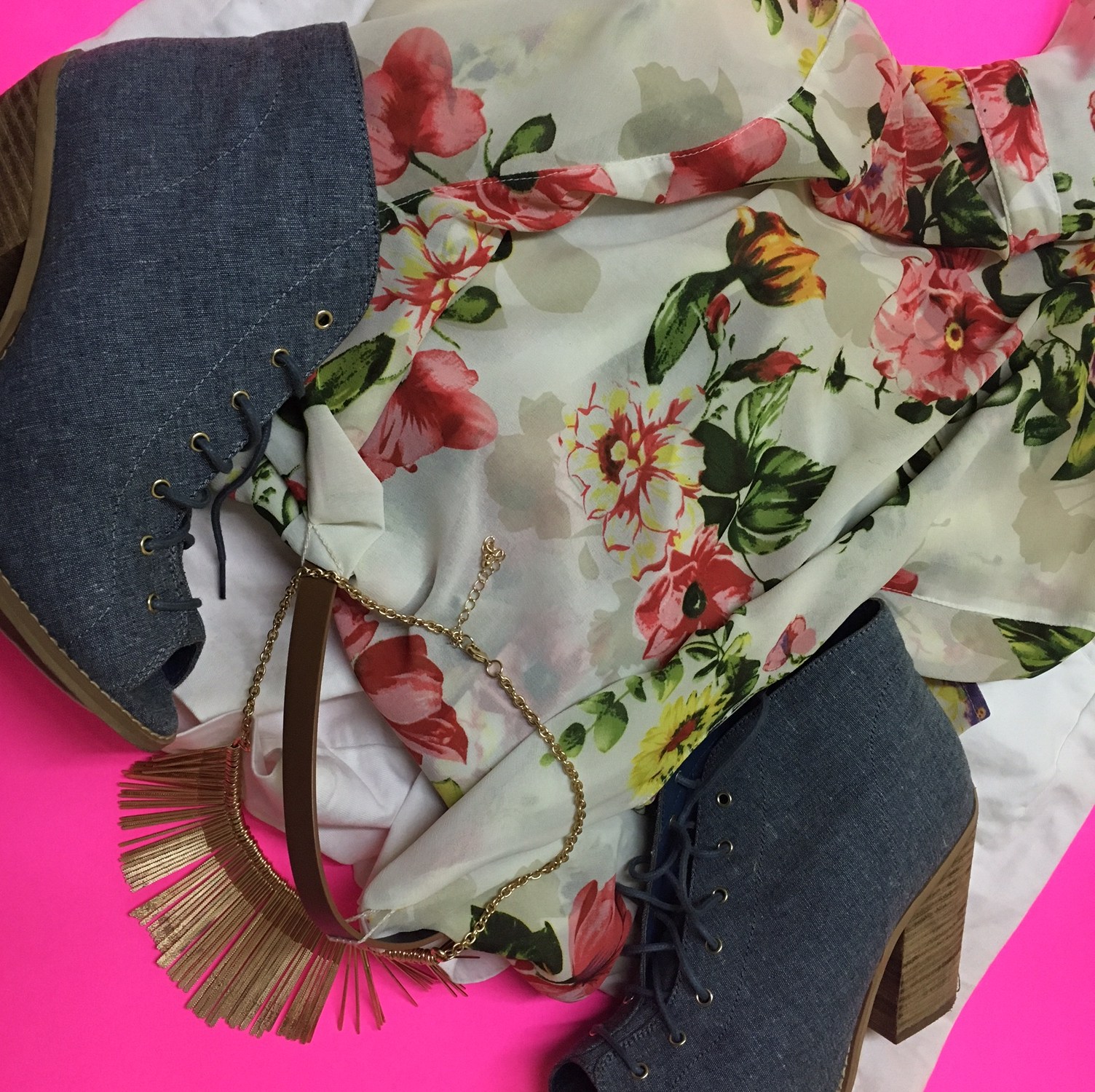 On my feet I wore a pair of denim and wood peep toe platform shoes, that I purchased from a store called “Call it Spring” last season. I wasn’t able to find them on the website anymore or find something reasonably priced that were similar. I purchased mine for $39.99.